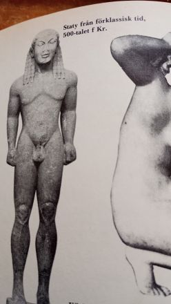 Stora likheter mellan den kouros (mansstaty) från 500-talet f. Kr. som är avbildad i min historiebok från gymnasiet och den jag såg på museet: