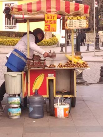 Halkalı saknade servering så jag frågade en vakt om det fanns något kafé i närheten. Han var inte säker men vände sig till någon en bit därifrån. Jo, berättade han sedan leende, det fanns ett ställe inte så långt bort och gå så och så för att komma dit. När jag kom ut på gatan mindes jag inte längre beskrivningen, så jag började gå planlöst.