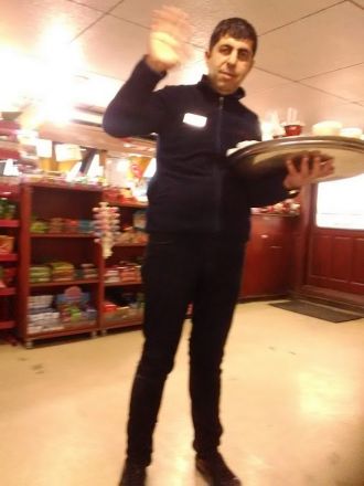 Vid ett tillfälle kom en av männen fram till mig och lät mig förstå att jag skulle följa med. Vi kom ut i förhallen och jag förevisades (på turkiska) bilder som hängde på väggarna - olika fotbollslag om jag minns rätt. Även en stor bild på mannen själv fanns där; han höll i en mikrofon.